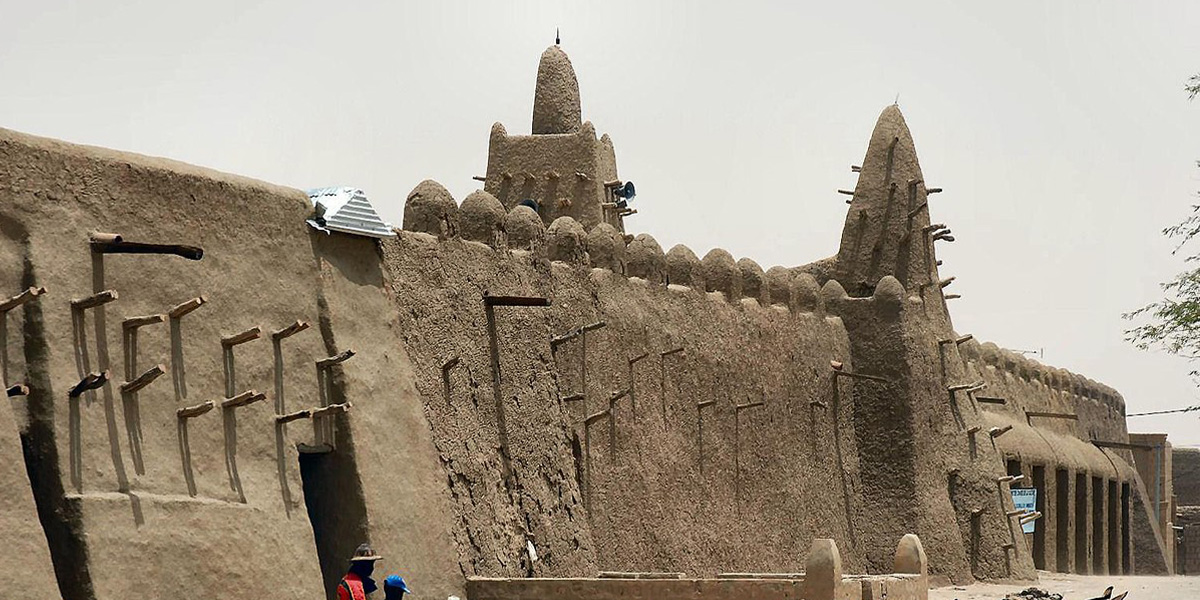 تضم مدينة تُمبكْتُو مجموعة من المساجد العريقة التي ظلت على مدى قرون مراكز تعليمية إسلامية كبرى ومراكز تربوية مهمة، وأشهرها جامع “تمبكتو” الكبير الذي يعد من أقدم وأكبر مساجد المدينة التاريخية في غربي أفريقيا، وقد بني الجامع الكبير بصورة متواضعة تتناسب مع حجم سكان المدينة في تلك الفترة، وقد جدد بناءه السلطان المالي الحاج منسا موسى سنة (1332م)، وكان قد بنى صومعته بعد عودته من الحج سنة (1324م) وهو الوقت الذي ضم فيه مدينة “تمبكتو” إلى مملكته، وقد ظل هذا المسجد موضع عناية كثير من السلاطين والحكام الذين تعاقبوا على حكم مدينة “تمبكتو”، فقد مر بعدة إصلاحات من حسن إلى أحسن، كما عرف ترميمات وتَوْسِعات تقتضيها الظروف وزيادة السكان والثروات المتوافرة وتطور العمران، ويشتمل المسجد من الداخل على خمسة وعشرين صفًا من العمد، تمتد من شمالية إلى جنوبية، وعلى ثمانية صفوف ممتدة من الشرق إلى الغرب، وقد شُيدت أهم أجزاء المسجد بالحجر كالعقود، وشُيد الجانب الغربي والمحراب وبعض أجزاء الكساء الخارجي والسقف من الخشب المتين، وللمسجد صحنان، أحدهما واسع والآخر صغير متصل بالمئذنة، ويعتبر هذا المسجد الجامع من المعالم الأثرية البارزة لمدينة “تمبكتو” الإسلامية التاريخية.