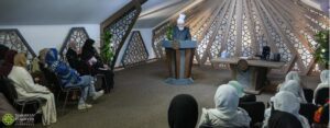 وخلال كلمته، حثّ حضرته الواقفات ناو على التفكير في كيفية الوفاء بالعهد الذي قطعنه لخدمة دينهن. وسواءً تابعن تعليمهن العالي ومساراتهن المهنية أو اخترن البقاء في المنزل بعد الزواج، أكد حضرته أن لكلٍّ منهن مسؤوليات جسيمة عليهن الوفاء بها كمسلمات أحمديات. كما شدد على تربية الأبناء على التقوى، وغرس محبة الله تعالى في نفوسهم، وضمان أن يكون منزلهن “منارةً من نور الإسلام، فإن هذا هو “جوهر كونهن أمهاتٍ واقفاتٍ ناو”.
