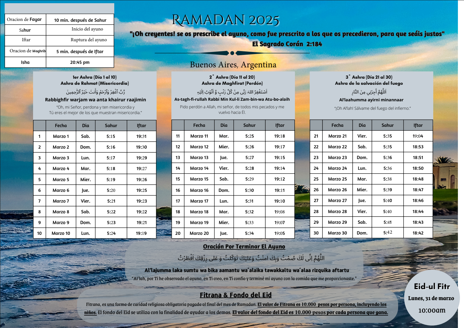 Calendario Ramadán 2025 – ¡La Comunidad Musulmana Ahmadía le felicita cordialmente por el bendito mes de Ramadán! ¡Que Dios acepte su ayuno, adoración, obras y oraciones y le otorgue su aprobación y cercanía a Él! Amén