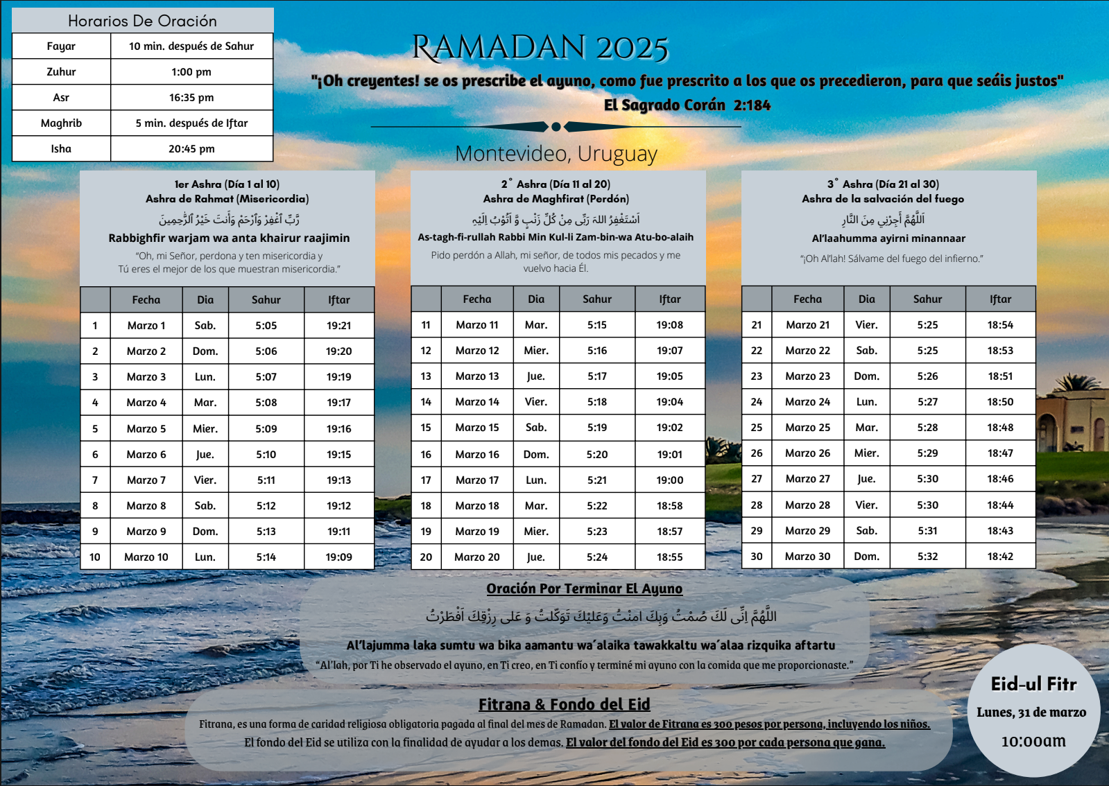 Calendario Ramadán 2025 – ¡La Comunidad Musulmana Ahmadía le felicita cordialmente por el bendito mes de Ramadán! ¡Que Dios acepte su ayuno, adoración, obras y oraciones y le otorgue su aprobación y cercanía a Él! Amén