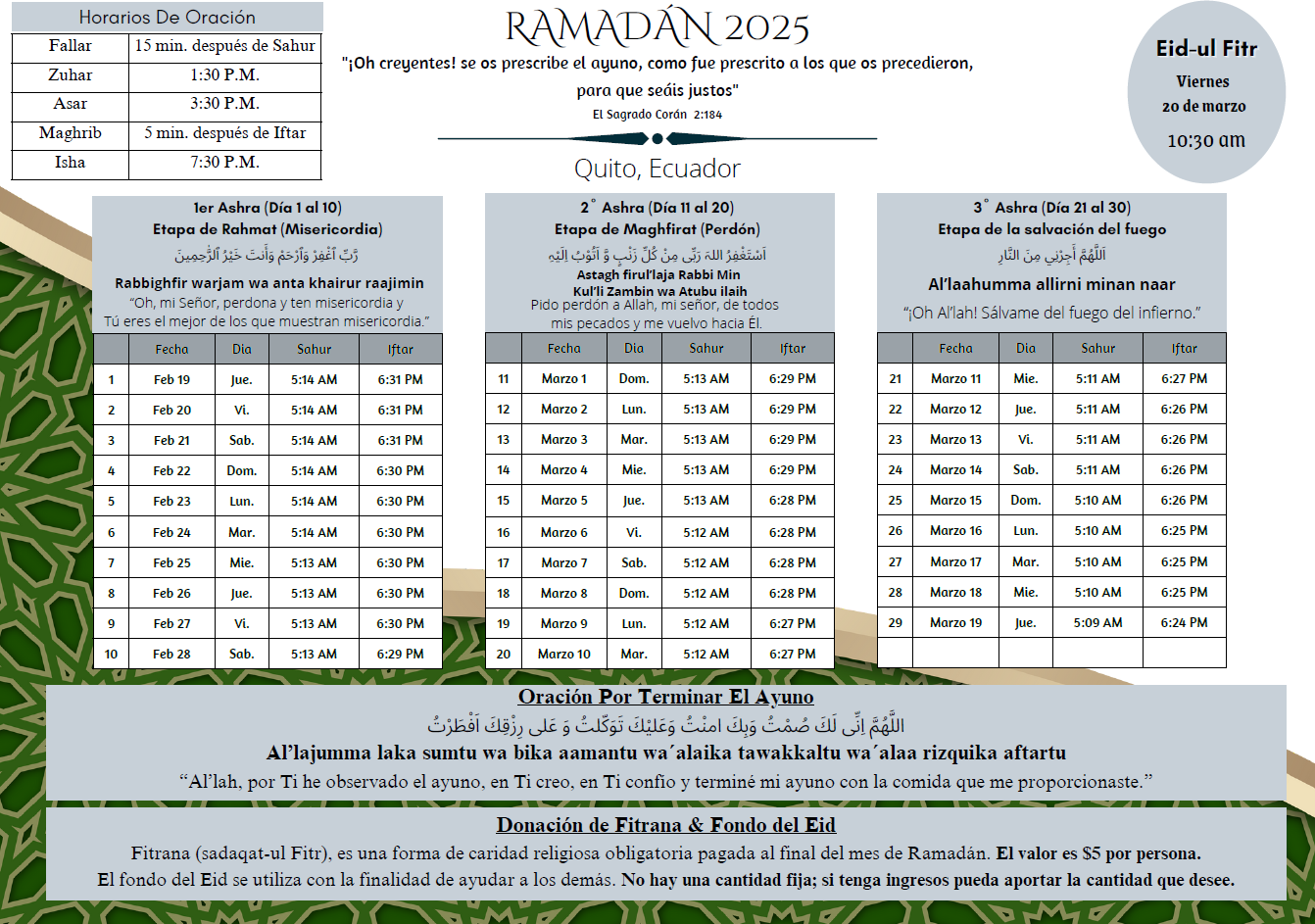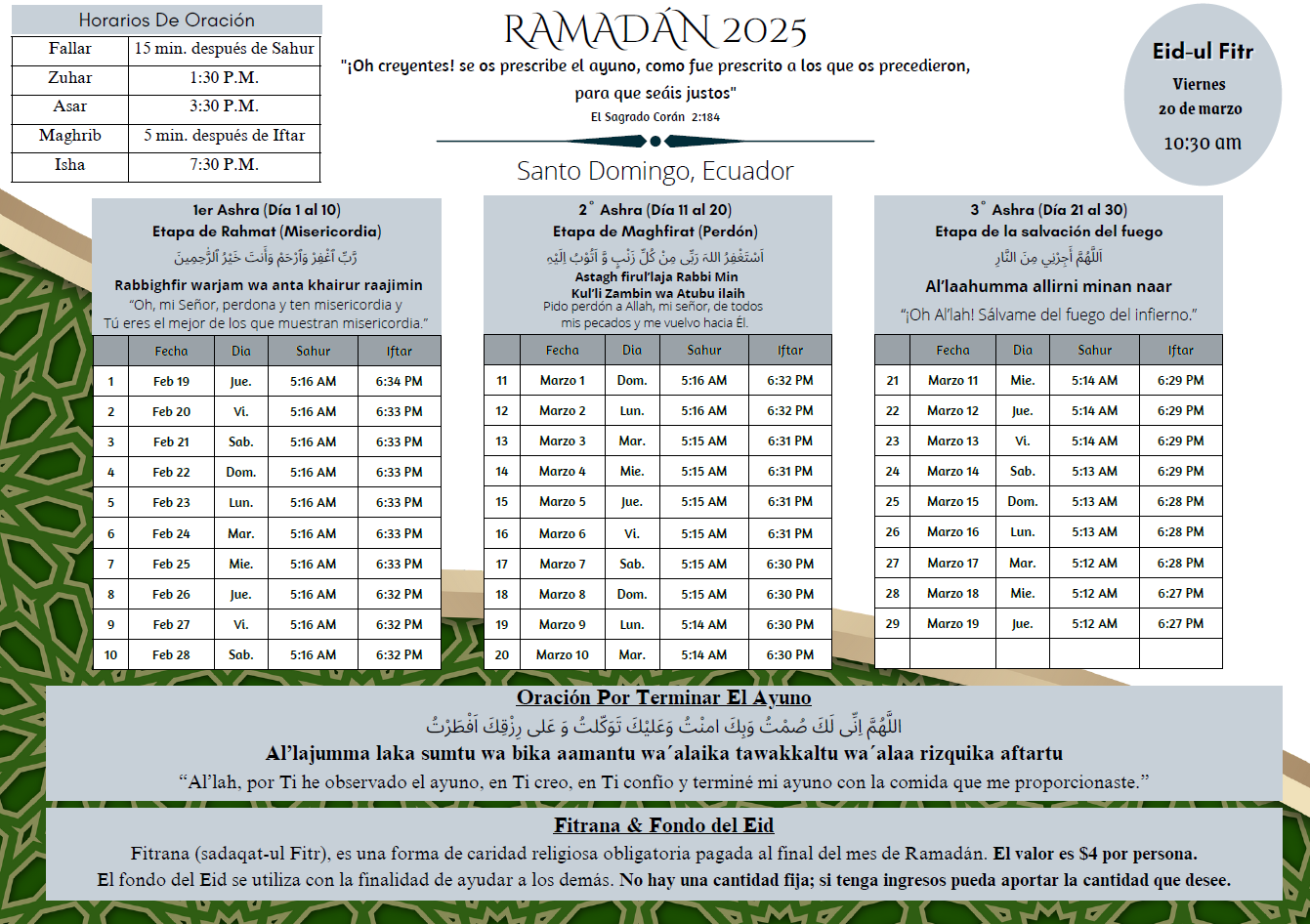 Calendario Ramadán 2026 – ¡La Comunidad Musulmana Ahmadía le felicita cordialmente por el bendito mes de Ramadán! ¡Que Dios acepte su ayuno, adoración, obras y oraciones y le otorgue su aprobación y cercanía a Él! Amén