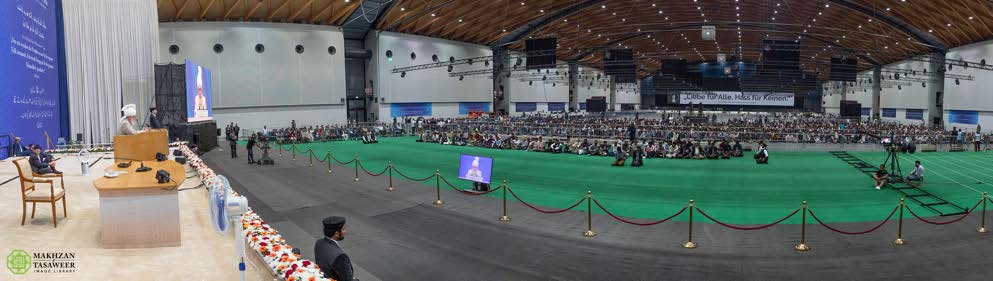 Su Santidad también dijo que había sido informado de que los musulmanes áhmadis que habían venido de Pakistán el año anterior habían desempeñado funciones para el Yalsa Salana de este año con gran diligencia y devoción.