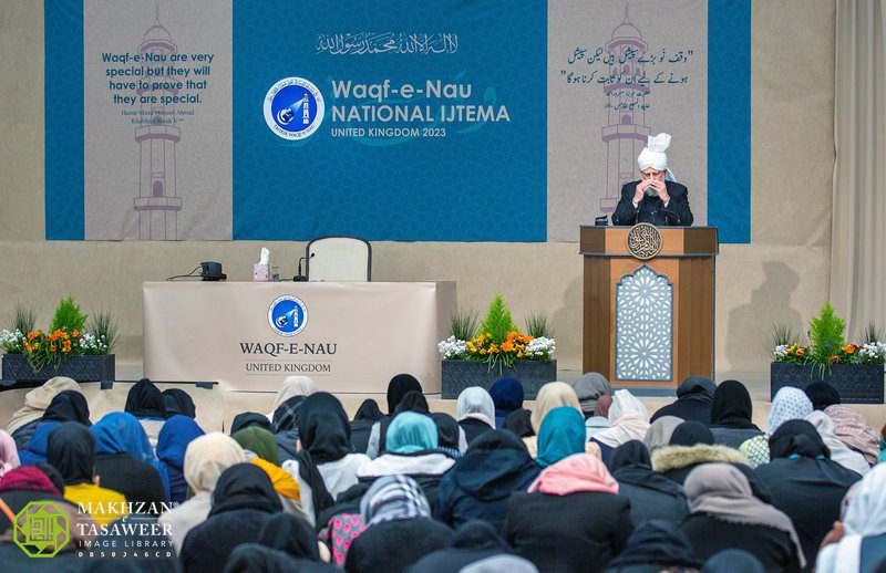 Hazrat Jalifatul Masih V (aba) en Waqfaat-e-Nau Ijtema UK 2023 el sábado Waqfaat-e-Nau – su verdadero valor y estatus