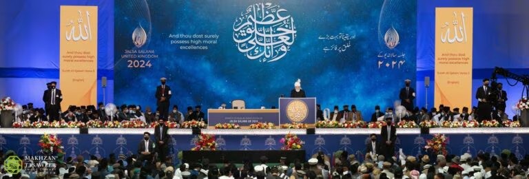Durante el discurso de clausura, Su Santidad destacó las virtudes del Santo Profeta Muhammad (la paz y las bendiciones sean con él) a la luz de los escritos del Mesías Prometido (la paz sea con él).