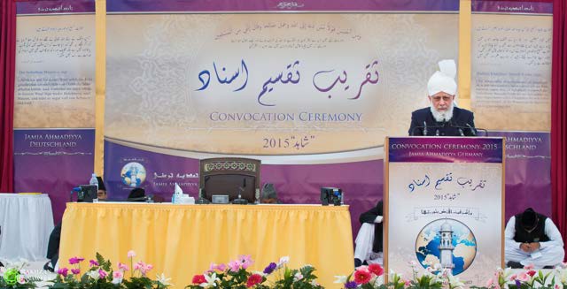 “Sois la primera clase que se titula del Yamia Ahmadía de Alemania y por ello es vuestra responsabilidad dar el mejor ejemplo y ser un modelo positivo para aquellos que sigan vuestros pasos.”