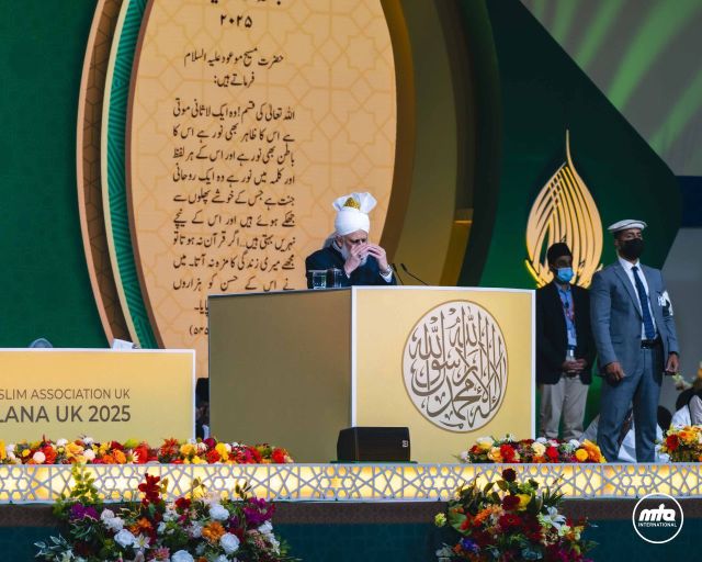Hadeeqat-ul-Mahdi, Alton, 26. srpnja 2025 .: Ubrzo nakon 16 sati, hazreti Mirza Masroor Ahmad, halifatul Mesih Va.b.a., stigao je u glavni dželsa gah (dvorana) na drugu sesiju drugog dana Dželsa Salane UK 2025. Sesija je započela učenjem Časnog Kur’ana (sura as-Saf, poglavlje 61, vjetovi 7-10), nakon čega je uslijedio njegov urdu prijevod iz Tefsir-e-Saghir , koji je predstavio gospodin Feroz Alam.