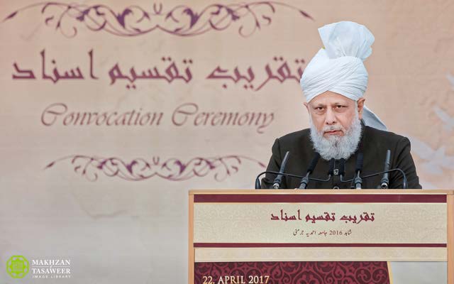 Ҳазрат Мирзо Масрур Аҳмад битирувчиларга мурожаат қилиб, шундай дедилар: